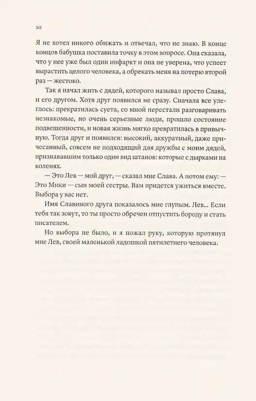 Действие романа происходит в провинциальном российском городе. В трёхлетнем возрасте у Мики умирает мама и его на воспитание берёт родной дядя — Слава. Слава объясняет Мики, что они с его другом Львом любят друг друга, и просит никому не рассказывать об этом. Мики вынужден нести на себе груз семейной тайны. Несмотря на тему враждебности российского общества к ЛГБТ семьям, это светлая и местами даже смешная проза.
