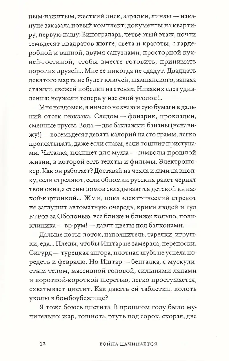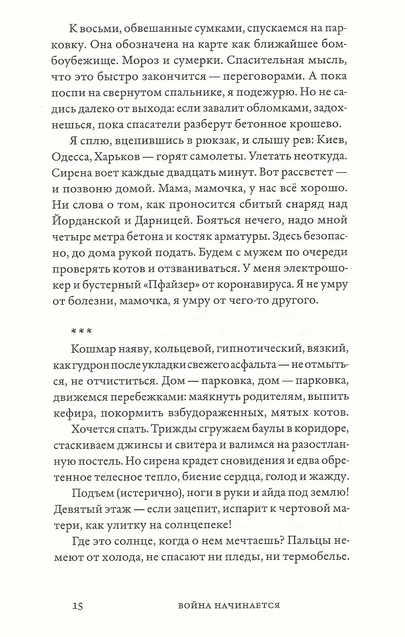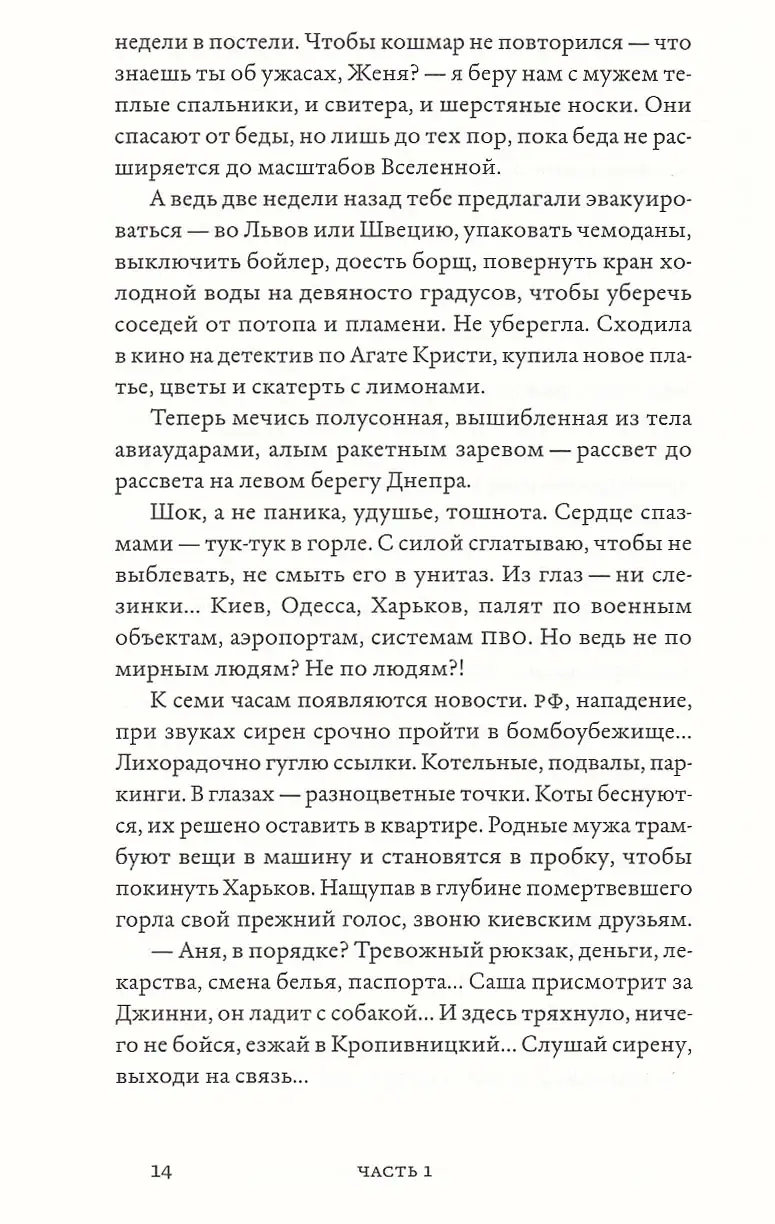 24 февраля 2022 года украинка Женя Бережная проснулась от звонка родных из Харькова: началась война. Привычная жизнь в любимом Киеве, где Женя писала сказки для взрослых, преподавала и вела подкаст о литературе, закончилась. Сирены и ночевки в подвалах, эвакуация, беженство, потеря близкого человека, попытки собрать себя заново в новой стране — все это описано в автобиографическом романе Бережной «(Не) о войне». Эта книга и правда не о войне — она об опыте преодоления травмы, о том, как благодаря творчеству и поддержке неравнодушных людей в страшной реальности находится место свободе, любви и надежде.
