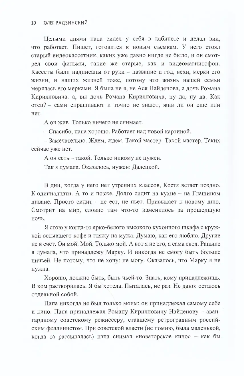 Олег Радзинский — советский диссидент, предприниматель и писатель, сын известного писателя и драматурга Эдварда Радзинского и актрисы Аллы Гераскиной. В 1982 году был арестован по статье 70 Уголовного кодекса РСФСР «Антисоветская агитация и пропаганда», осуждён и приговорён к одному году строгого режима и пяти годам ссылки. В 1987 году вместе с другими советскими диссидентами был помилован специальным указом Президиума Верховного Совета и фактически выслан из страны. В настоящее время проживает с семьёй в Лондоне, где занимается литературной деятельностью.